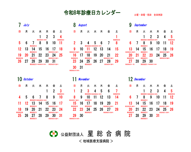 - 各科により休診日・受付時間・診療時間が異なります。各診療科のページをご確認ください。